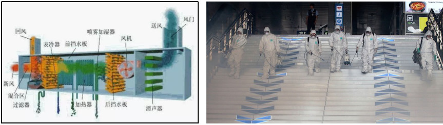 • 对于室内空气,主要是采取通风和过滤来改善空气质量。部分站厅空调系统采用了以高压静电为主的中效过滤设备,需要定期对空调系统进行清洗和拆洗消毒。