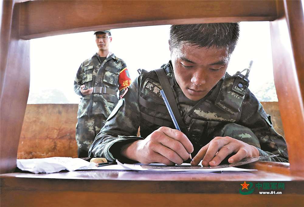 特战队员根据侦察记忆进行标图作业
