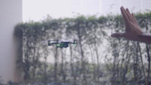 用户将 Spark 放在手掌上,当无人机检测人脸后就会解锁自动升空悬停,而利用手势操作,你可以让无人机升高、降低、飞左、飞右:向左或向右移动手掌,Spark 会向对应方向移动;人向前或向后移动,同时将手掌心对着 Spark 前方时,无人机会远离或靠近;对着 Spark 挥手,那么无人机会飞到 10 英尺的远处。所有的飞行路线都按照你手势动作来,就像是你给 Spark 施了魔法一样。