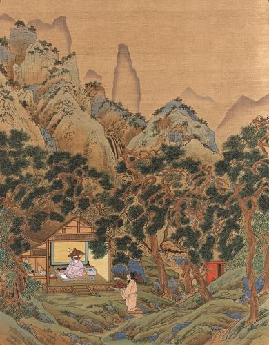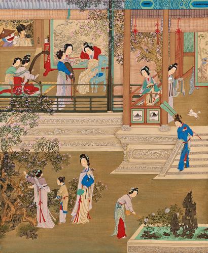 事实上,在绢上作画要复杂得多——先要做绢,染色、矾制,再于纸上做稿,再“过稿”到绢上,然后渲染上色。