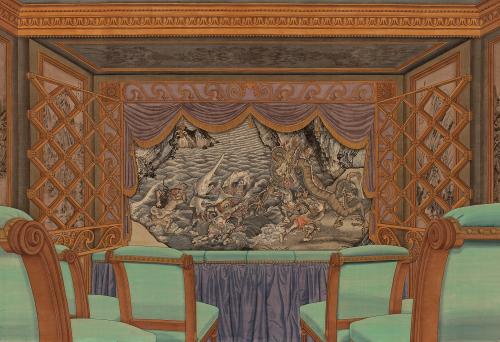 画中的窗格,则运用到了中国传统的界画画法。“这个画法传统是画亭台楼阁的。我觉得将这种画法拿过来画室内的直线部分也很适合,所以就做了这样的尝试。”