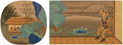 “当时我在家练习临摹复制的过程中,就突然想,如果把我熟悉的、挺有意思的东西加到古画中去,会是一个什么样的感觉。”
