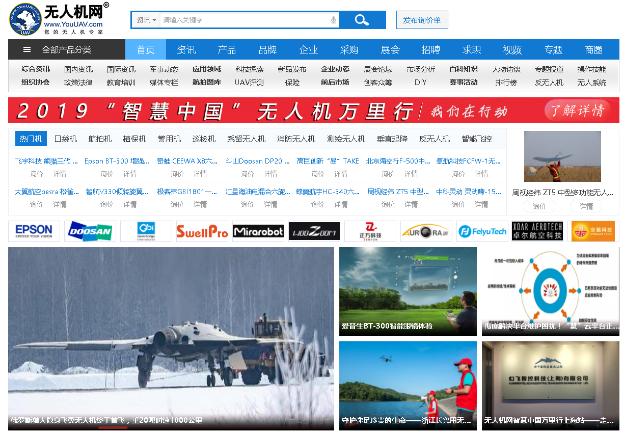 无人机网(www.youuav.com)是全球无人飞行器之大本营,汇聚所涉各种应用(军事、工业、民用),包括制造、零部件以及相关联之服务领域。同时提供广告、数据分析以及咨询服务,该网建设者致力打造全球最大的专业性无人机网络平台。