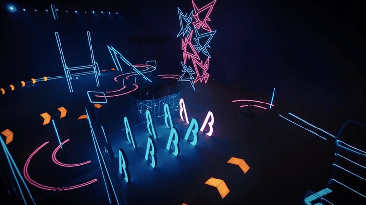 赛道分为室内赛道和室外赛道,由德国设计师设计。全面打通了南洋街及12000平方米的摄影棚。三条赛道,平均长度800m,每条赛道都超过30个转弯,45个障碍门。值得一提的是室内银河赛道的巨型“黑锋”障碍门,高度几乎与棚内比肩,由6个异型障碍门罗列而成,飞手需要依次回旋才能通过。而室外赛道的七连门,对于飞手来说也十分具有挑战性,在比赛过程中炸机的几率很高,被解说员戏称为“七杀门”。赛事的承办方还邀请了世界顶尖的制作团队——曾为F1担任拍摄的英国团队INP来进行拍摄。38台摄像机位360度无死角全面捕捉细节,收集的视频素材达到40T。