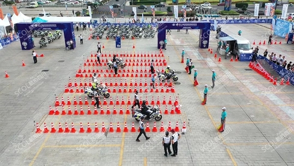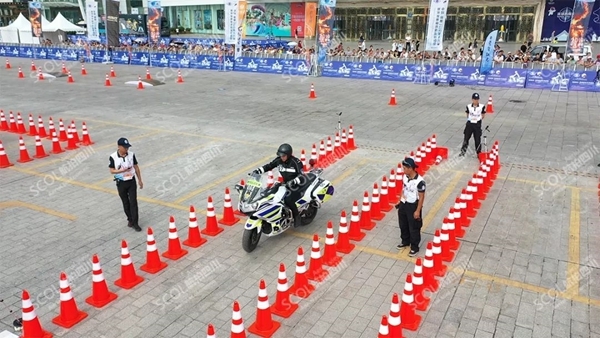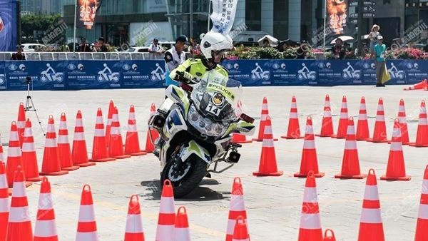 而下午进行的桩桶竞赛,则要求选手用最短的时间通过指定路线,同时还要运用驾驶技巧来避免摩托车碰到锥桶。