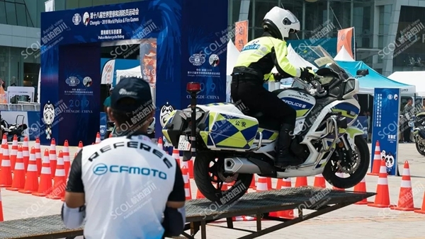 作为本届世警会可看性最强的项目之一,警用摩托车技能赛分为桩桶和慢骑两大类,在今天分别展开了激烈对决。