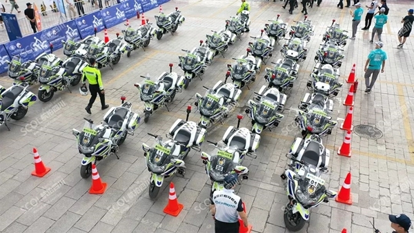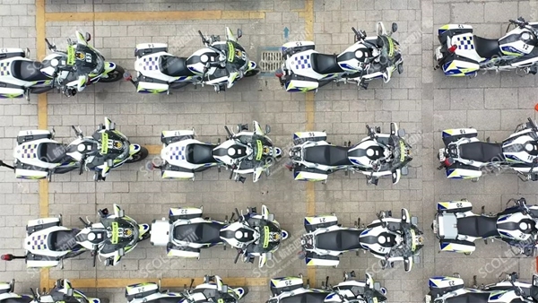 停靠整齐的赛用摩托车身重量高达260公斤,威风凛凛的气势吸引了不少观众前来拍照,已成为本次世警会现场的热门“打卡地点”。