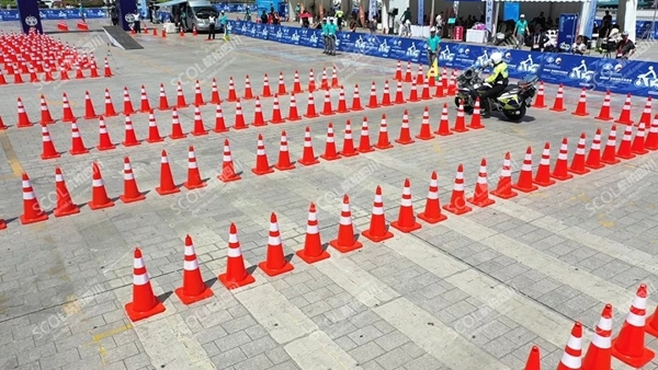 鲜艳的红色锥桶排列组合成了各种形状的赛道,宽约两米,等待着选手们前来挑战。