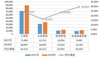 图表3:2017年和2018年道通科技在北美、欧洲以及电商渠道的营收情况(单位:万元)