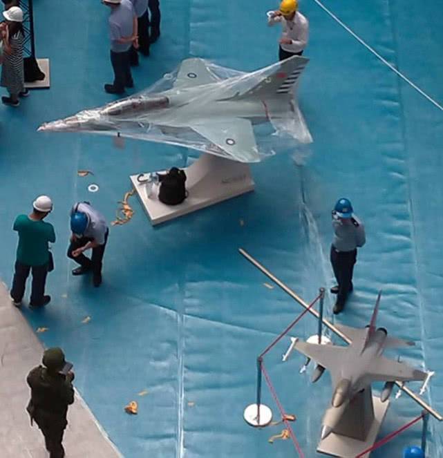 在现场还展示有“蓝鹊”教练机模型(图中上方)。