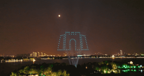 恢弘的无人机阵列,变幻出数个苏州地标