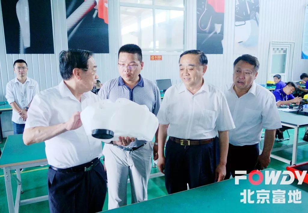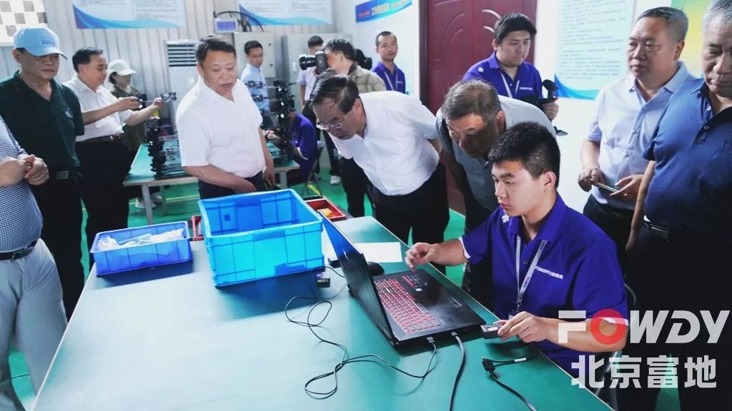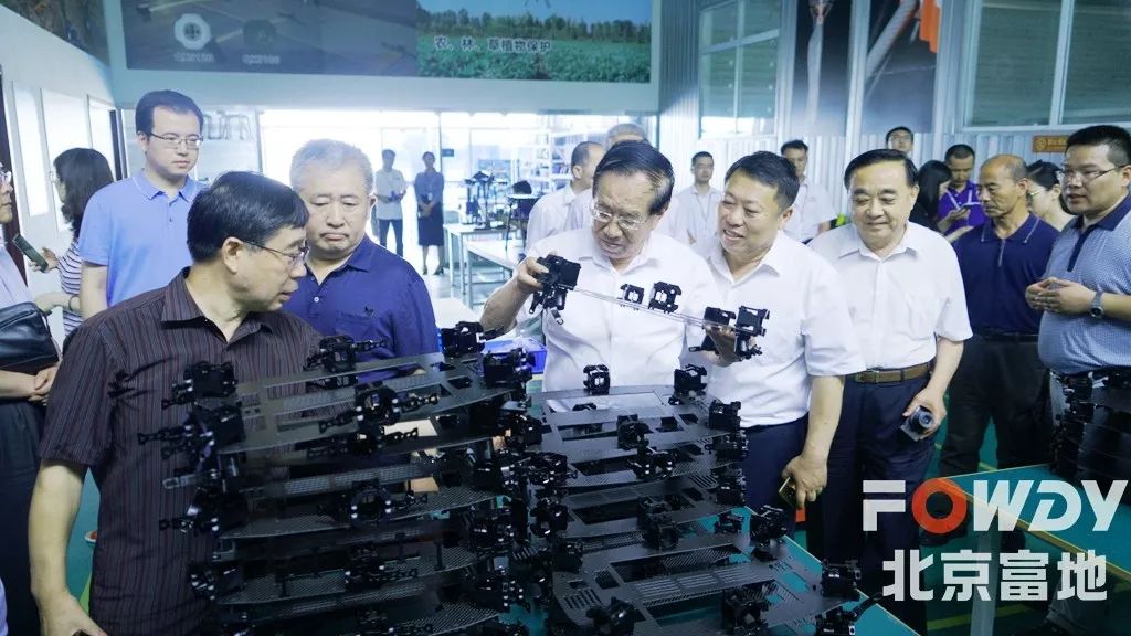 在北京富地无人机飞行基地,调研组一行人先后在装备测试中心、无人机应用技术培训中心参观调研,详细了解北京富地在新机型研发、组装调试、实飞测试以及人才培训方面的具体情况。