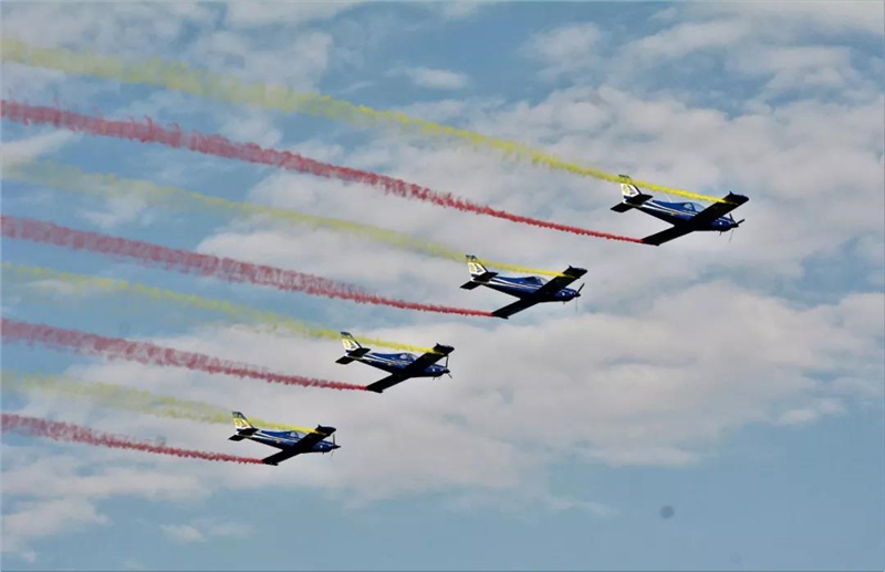 他们在世界顶级飞行赛场上频频展现英姿,可进行单机、双机、四机、五机、空中打字和夜间飞行表演。