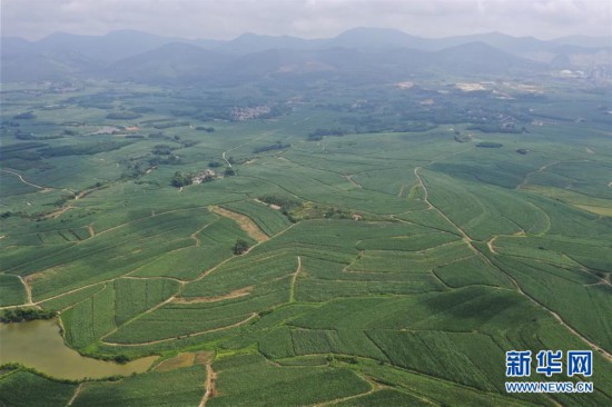 8月21日无人机拍摄的广西上思县“蔗海”。 初秋时节,广西上思县万亩糖料蔗田地绿意盎然。上思是广西糖料蔗的主产区之一,目前全县糖料蔗种植面积超过43万亩。 新华社记者 曹祎铭 摄
