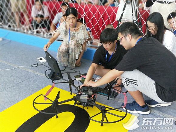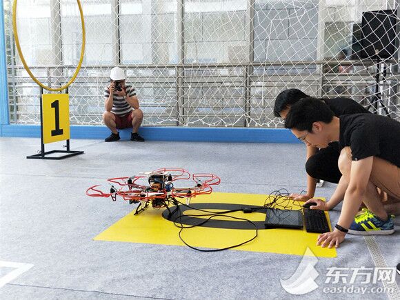 东方网记者傅文婧8月25日报道:密林、河流、峡谷……变幻莫测的室内外地形,一架无人机在其中自由穿行,从停机坪起飞后流畅地穿越障碍圈,对树桩上的二维码进行识别并拍照,最后安全地降落在停机坪上。这一套操作看起来并不难,然而这其中却没有人为操作,全凭无人机的“大脑”自己思考、判断、执行任务。仿佛科幻电影里的“黑科技”背后,是人工智能和深度学习的控制感知算法,科幻和现实在这一刻被模糊了界限,也令人看到智能无人机未来的无限潜力。8月25日,第三届全国“高分”无人飞行器智能感知技术竞赛在上海交通大学举行,15支学生及企业代表队经过激烈角逐,最终由上海交大机械与动力工程学院的“战锤”飞行机器人队获得冠军。