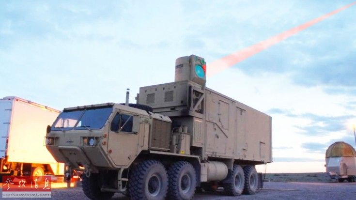 在HELWS-MRZR公布前,目前已知进行过实际测试的有陆基移动式激光炮是美国波音公司的“高能激光系统机动型演示样机”(简称HELMD),这种功率为10千瓦的高能激光炮已在测试中击落过150架无人机及各种火箭弹等目标,但搭载平台的尺寸也不小,需要一辆重型军卡。图为HELMD测试资料图。