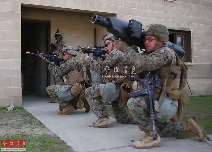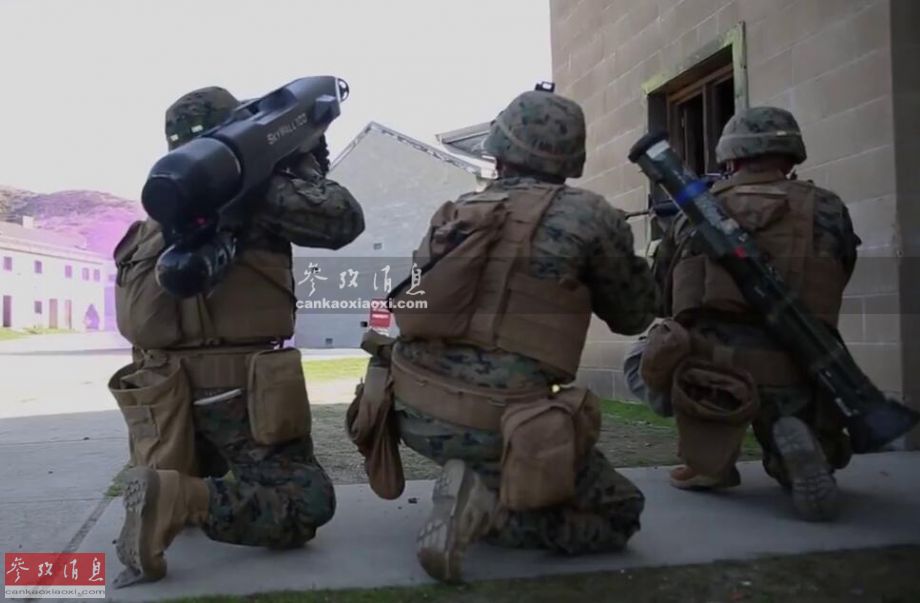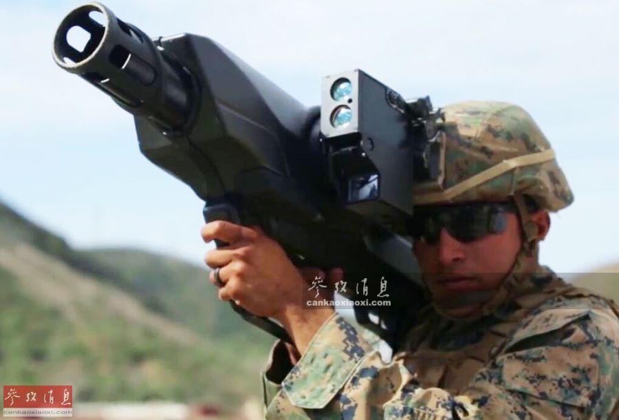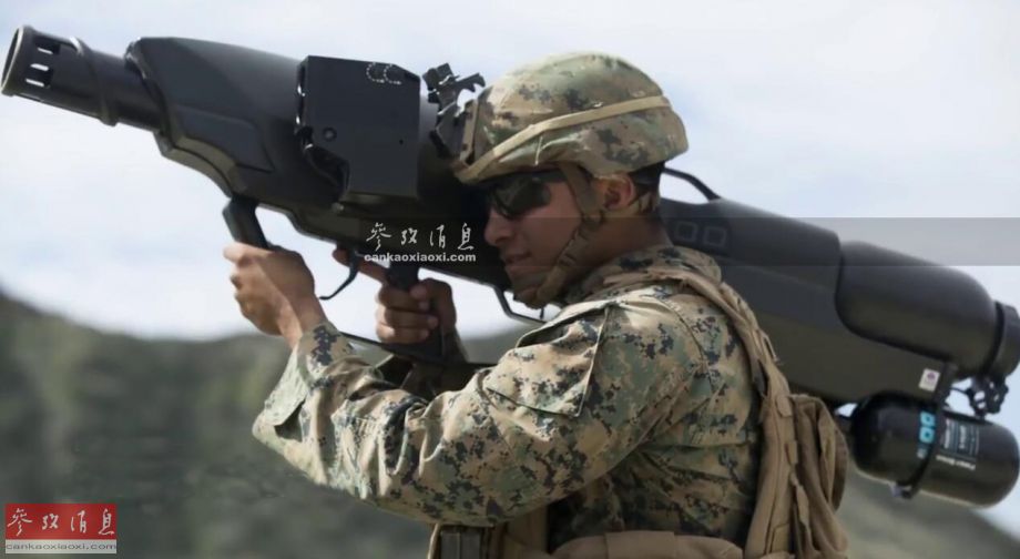 图为军演中,美海军陆战队员测试“天障”反无人机炮,图中可见该系统与M4卡宾枪的尺寸对比