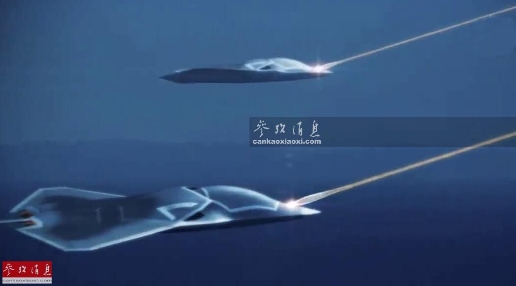图为2架搭载激光炮的无人战机,协同拦截敌军弹道导弹想象图