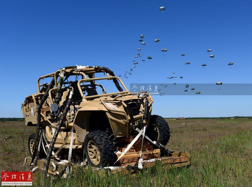 图为“敏捷反应-2016”军演期间,美军第82空降师测试MRZR突击车空投资料图