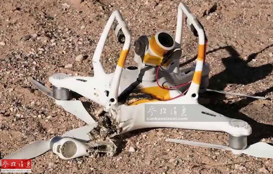 除了右侧旋翼推进器外,高能激光束烧毁的可能还有机身内部的控制线路,在遭照射后不久,无人机直接失控坠毁。