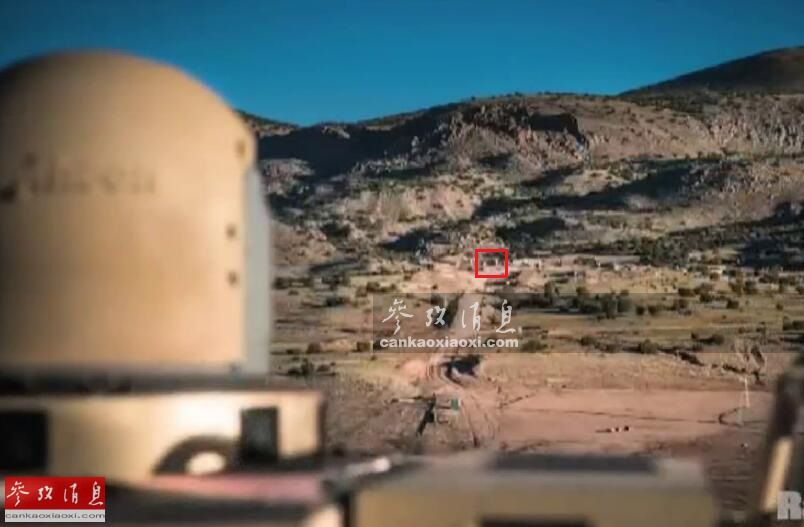 图为雷锡恩公司官方公布的测试视频截图,本图小红框标出的是无人机靶标的所在位置,可见与激光炮车的位置有相当的距离。