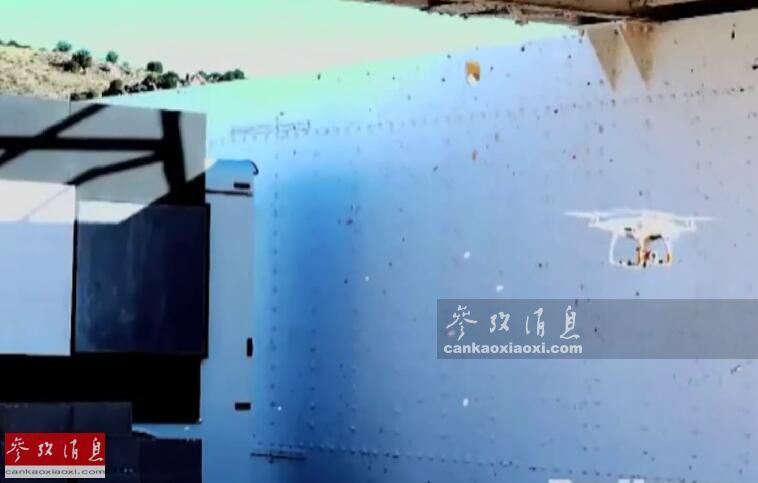 另一个角度拍摄的无人机靶标画面,注意无人机右侧旋翼的蒙皮已被烧掉并冒烟