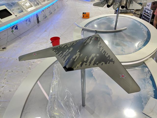 2019莫斯科国际航展,俄罗斯联合航空制造集团展出的S-70“猎人”隐身无人机模型