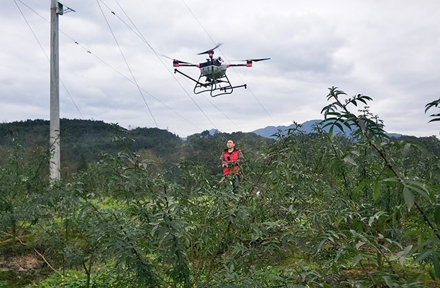 “不仅可以喷洒药剂、种子、粉剂,而且作业时高度低,飘移少、可空中悬停、无需专用起降机场,旋翼产生的向下气流还有助于增加药流对作物的穿透性。”王山村利用无人机给花椒树喷洒农药的喜讯在当地不胫而走,临近的韩河村听到消息后立马引进,不仅让无人机在田间作业,还利用无人机对养鸡场进行消毒。
