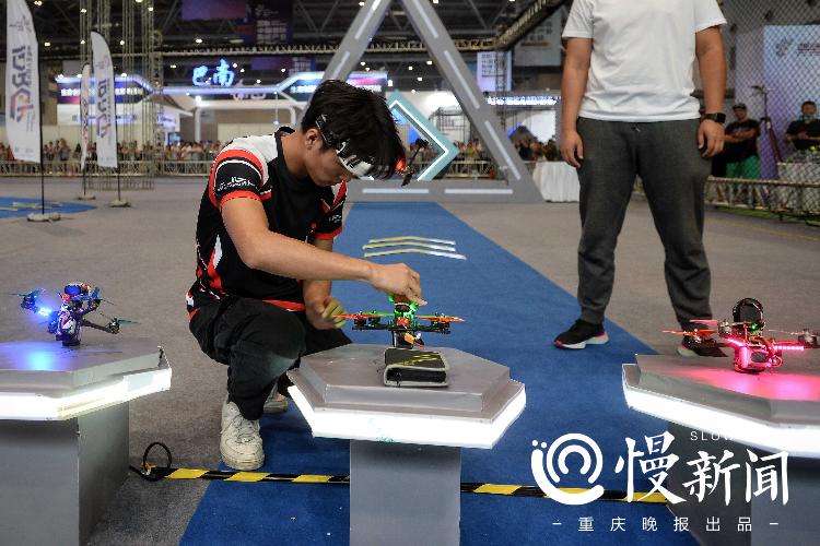8月28日下午,重庆国际博览中心N7馆,第二届国际无人机竞速大奖赛决赛举行,4位飞手为观众奉献了一场专属“空中F1”的速度与激情,最终,来自中国香港的选手周基勇蝉联冠军,捧走了15000元的大奖。决赛时,上游新闻·重庆晚报慢新闻记者在现场目击了全过程,下面,就由记者为你带来比赛的精彩瞬间。
