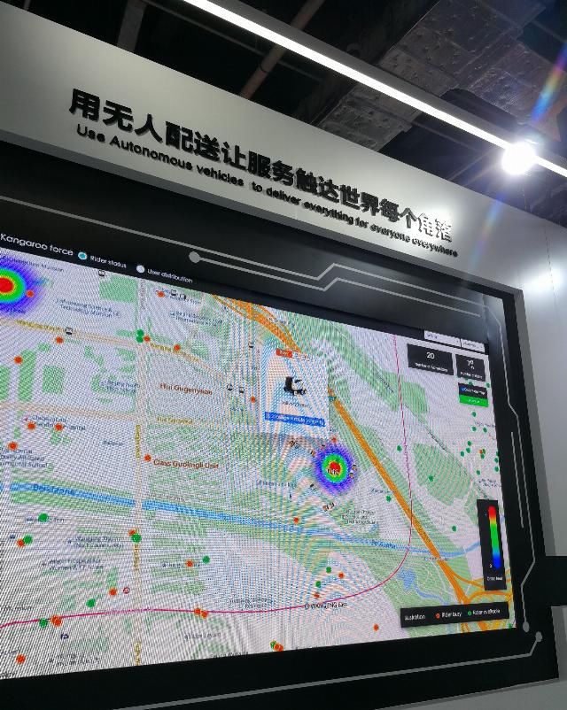 美团人机协同调度大屏上可以显示地图区域内运营的美团无人配送车“小袋”