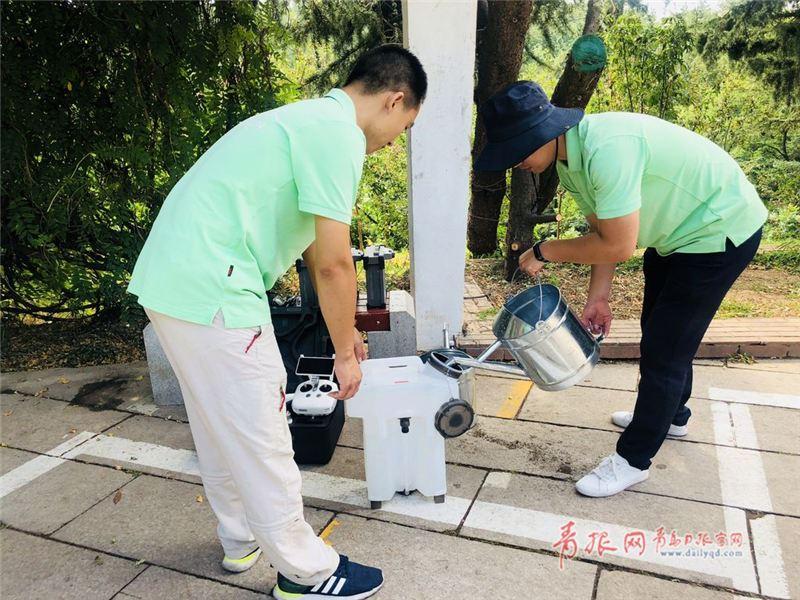 宋毓峰介绍,以往喷洒作业主要为手推打药泵、车载高压泵和雾炮车等传统方式,地形复杂、树冠高大的地方就成为“盲区”,一旦没有及时消灭病虫害,就容易发生病虫害交叉感染等问题。为了解决这一难题,园林公司3名工作人员专门考取了无人机植保飞行证,斥资近8万购买了无人机和航测机设备。