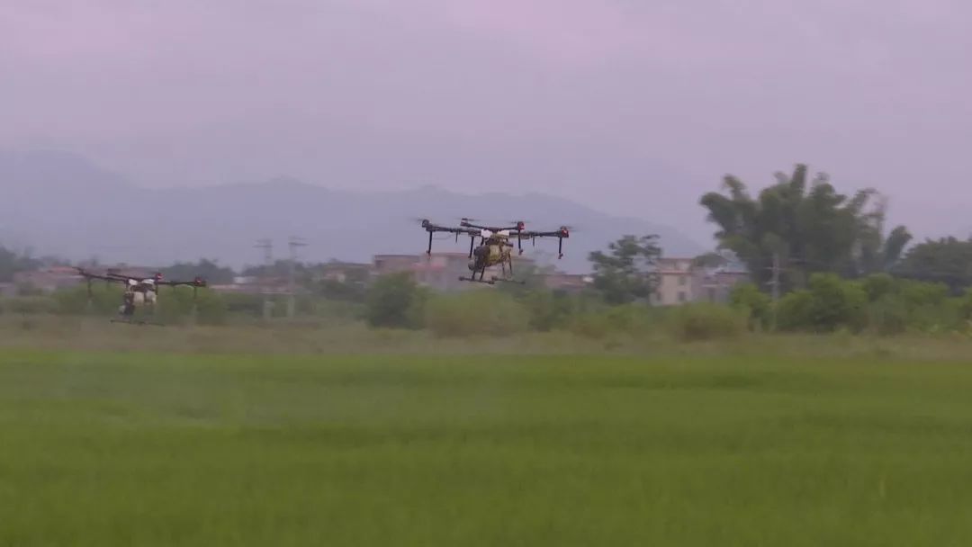 在马宁镇塘岗村,记者看到先进的植保无人机在技术人员的操控下缓缓升空,在稻田上空均匀地喷洒农药。不到十分钟,植保无人机就完成了农药喷洒工作。