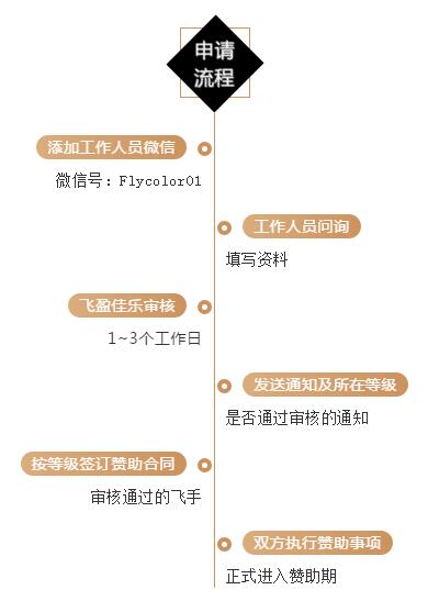 飞盈佳乐本次赞助的方式主要以赞助飞盈佳乐电调/塔产品为主,其次对飞盈佳乐赞助的赛事参加比赛取得名次后还有奖金奖励,最高3000元(奖金会根据赞助比赛的规模有增减,具体要看我们赞助的赛事规模/类型)。