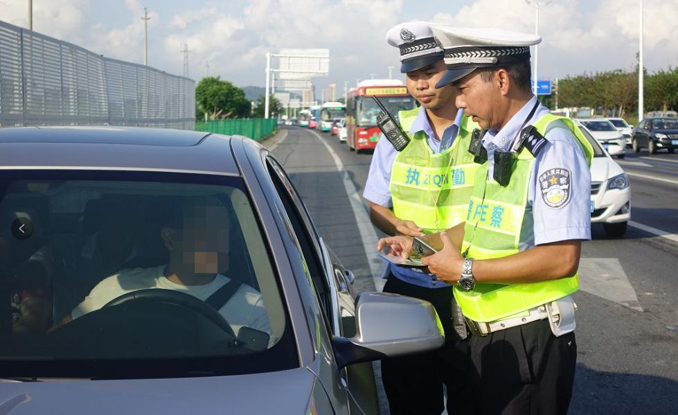 金湾交警黄警官立即拦停车辆检查,司机梁某一边摇头叹气,一边拿出证件。梁某叹气是有原因的,黄警官通过系统查询,梁某之前在肇庆四会有几宗违法记录,已经扣了9分,而他的驾驶证清分期在2019年10月20日。▼