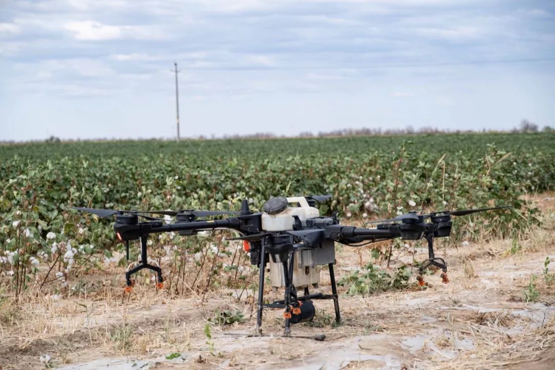 如果不是亲眼所见,托尼并不知道大疆无人机除了可以航拍,原来还能用在农业的植保飞防上,用无人机就实现了对棉花等农作物的施药。