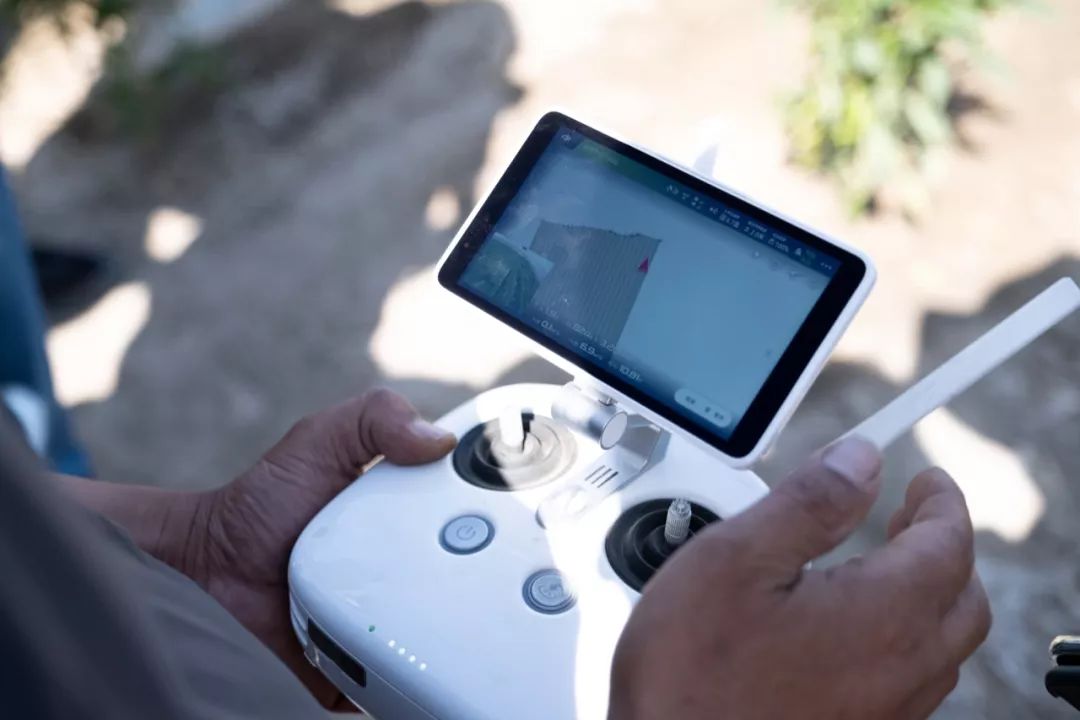 黝黑粗糙的手控制起无人机来却驾轻就熟