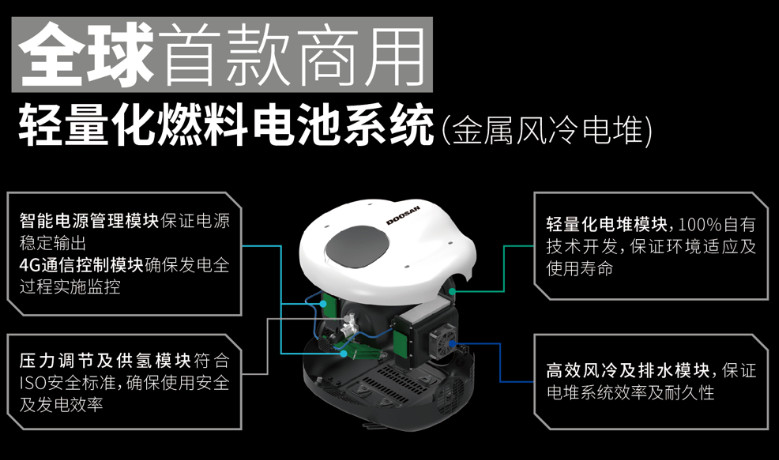 斗山创新(深圳)有限公司(简称:斗山创新)是斗山集团在中国的全资子公司,依靠自有核心技术,致力于开发高性能移动式轻量化燃料电池系统。产品线主要包含1-5kW空冷系统以及5-30KW轻量化水冷系统,目前产品主要应用在工业级无人机,无人船以及机器人领域,后续将用于大载重货运Cargo无人机,UAM及eVTOL等载人飞行器等领域。产品立足国际市场,先后通过了多项国际认证标准,目前多款燃料电池系统已经完成FCC、CE认证,储氢系统完成美国DOT认证、加拿大TC、欧洲TPED、韩国KGS等国际认证,产品和技术均为全球领先水平。