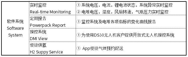 燃料电池系统DP30是目前全球功能最完善的轻量化风冷质子交换膜燃料电池系统,由2.6kW金属电堆及风冷组件,电源管理及通信组件,储氢组件构成的封闭式系统。智能化的DP30,除了保证系统使用寿命以及环境适应性外,精准实时的4G通信及监控平台为客户提供了便捷的使用体验。该系统为开放式接口,稳定输出50±2V电压,可与同等级的无人机直接对接及使用。