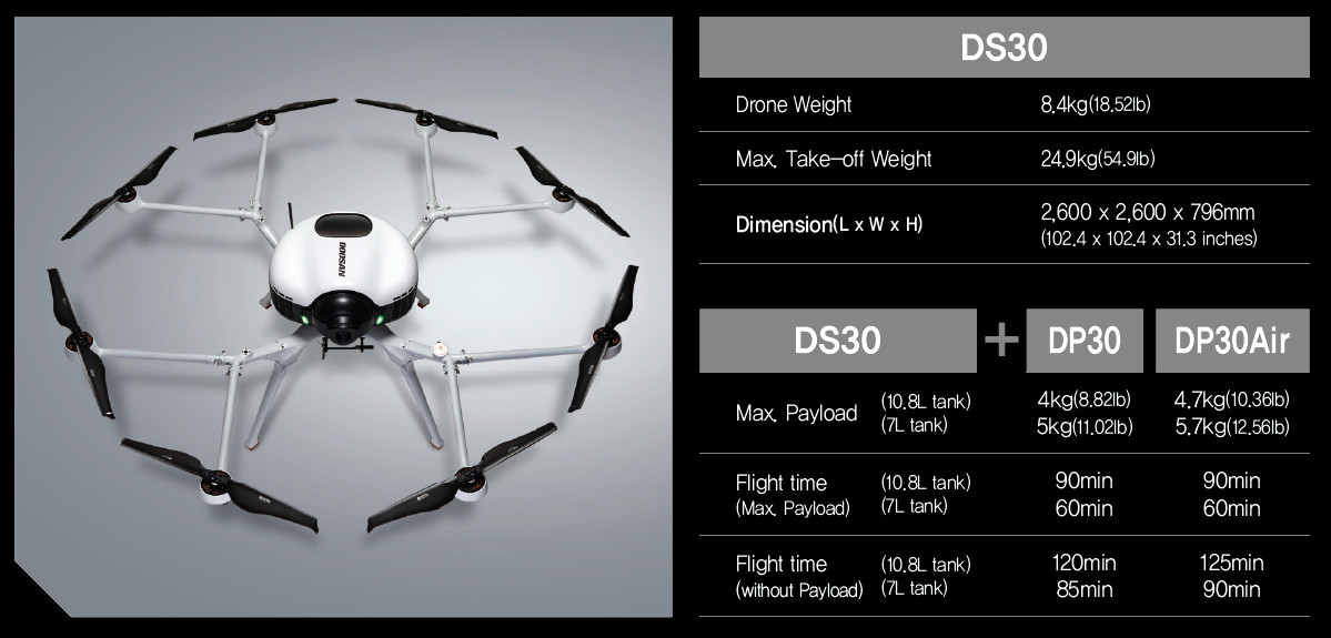 燃料电池专用无人机平台DS30是为适用DP30开发的使用的8轴动力系统,不仅实现了燃料电池系统的效率最大化,也保证了整套系统的飞行安全。