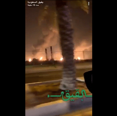 路透社报道称,当天,沙特内政部发言人表示,沙特阿美在布盖格和胡赖斯的两处石油设施遭无人机袭击,引发大火。但他没有透露有关无人机型号以及来源的具体信息。
