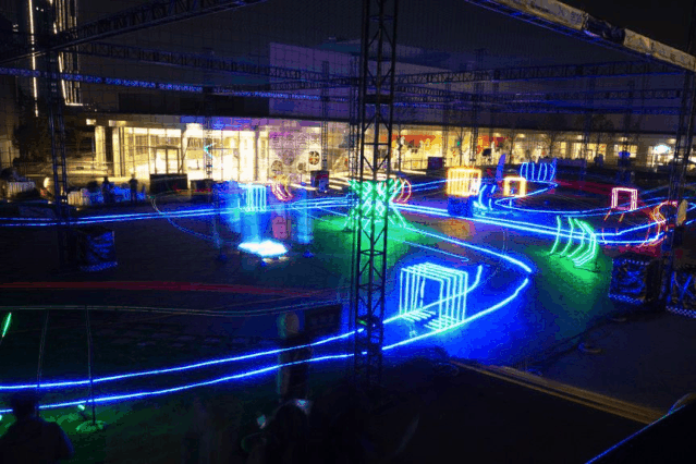 戴着FPV眼镜,你就能以第一人称视角竞速,躲避障碍~