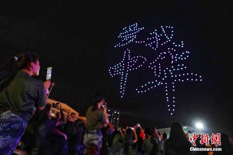 9月17日晚,一场无人机灯光秀表演在南京航空航天大学天目湖校区“筑梦云天”迎新晚会上亮相,300架无人机伴随着灯光和音乐缓缓升空,组成爱我中华、天安门、大飞机等图案,迎接国庆节的到来。