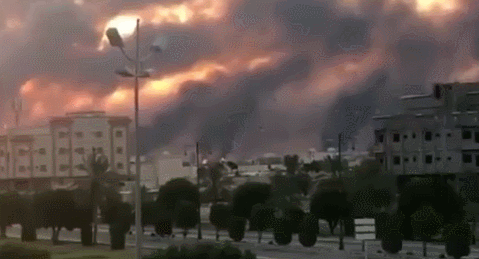 当天凌晨4点左右,也门胡赛武装用10架无人机偷袭了沙特阿拉伯境内的布盖格炼油厂和胡赖斯油田,厂区内的多处石油加工和储存设施发生连环爆炸,燃起的大火几乎将整个夜晚都照成了白昼。