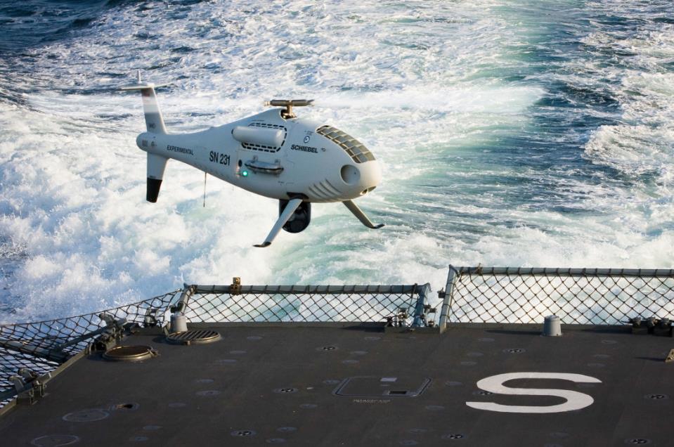 【据unmannedsystemstechnology网站2019年9月17日报道】8月底,奥地利Schiebel公司研制的CamcopterS-100无人机搭载芬兰Turva号近海巡逻舰在芬兰湾完成了为期5天的海上监视测试。芬兰边防警卫队已采购这种垂直起降无人机用于执行海上监视任务。据悉,配有L3 WESCAM公司MX-10光电/红外(EO/IR)摄像机、Overwatch imaging公司的PT-8 Oceanwatch广域海上监视设备和自动识别系统(AIS)接收器的S-100无人机,顺利完成了昼夜间搜索、定位、识别目标和海上预警监视等科目的测试。整个测试由芬兰边防警卫队组织,由欧洲海洋和渔业基金(FEMP)出资赞助。