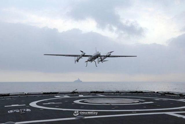 图片:我国海军试验的一种四旋翼垂直起降无人机,另有一具推进螺旋桨