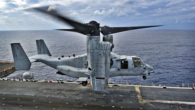 图片:MV-22“鱼鹰”倾转旋翼机,其两台发动机都装在翼尖