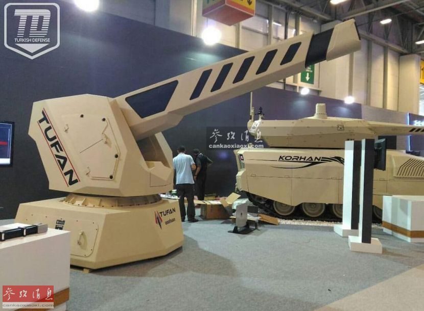 除?ahi-209轨道炮外,土耳其Aselsan公司还在研发更大功率的TUFAN轨道炮,曾在2017年的英国防务展上展出过,可见该炮已集成到专用炮塔中,外形比?ahi-209更加成熟,可根据作战需要,搭载到海、陆作战平台上。