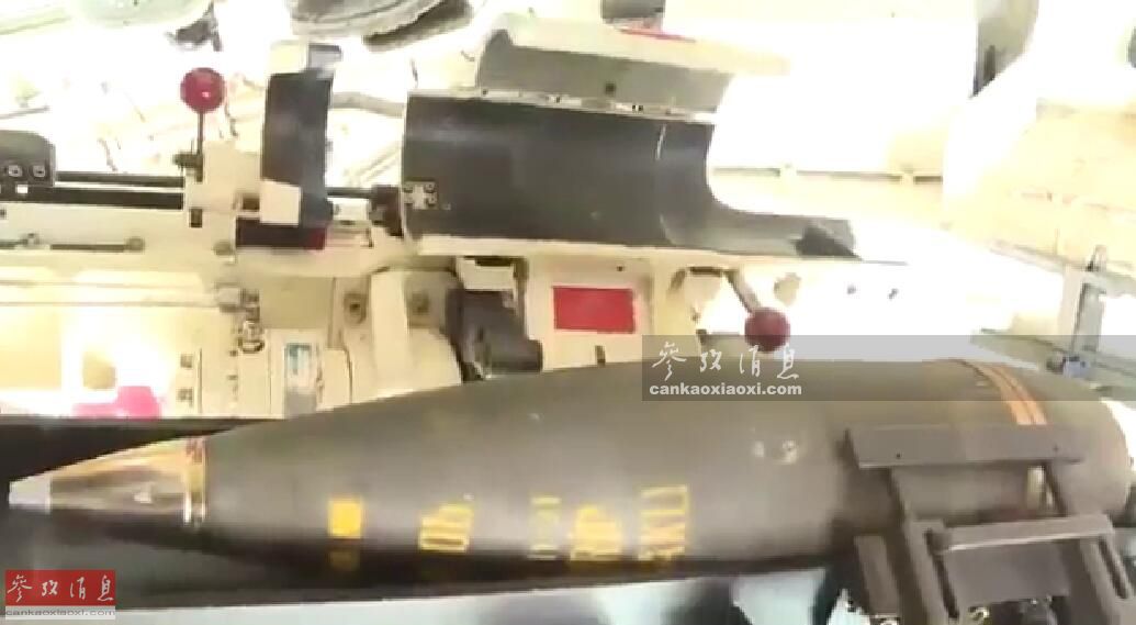 图为T-155自行火炮内部舱室画面,可见炮手后方的155毫米炮弹架