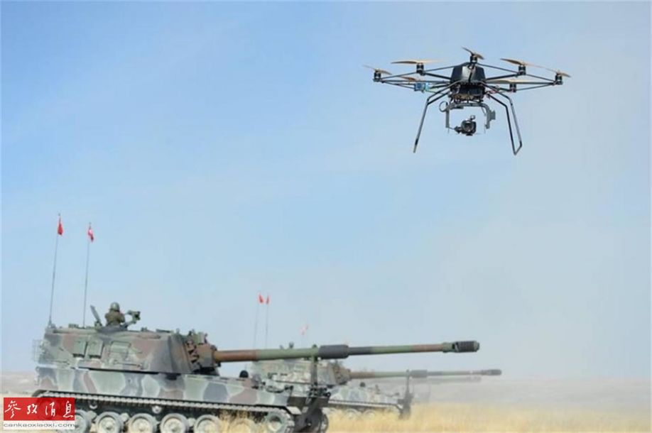 土耳其引进K-9自行火炮,主要是看重了其射程远和爆发射速能力,比较适用于伴随土军装甲部队行动,压制隐藏在山区的库尔德工人党武装。图为2015年10月,土耳其军队举行代号为”Ate Serbest 2015“大型军演期间,土军使用多旋翼无人机拍摄国产T-155(韩国K-9出口型)自行火炮野外推进。