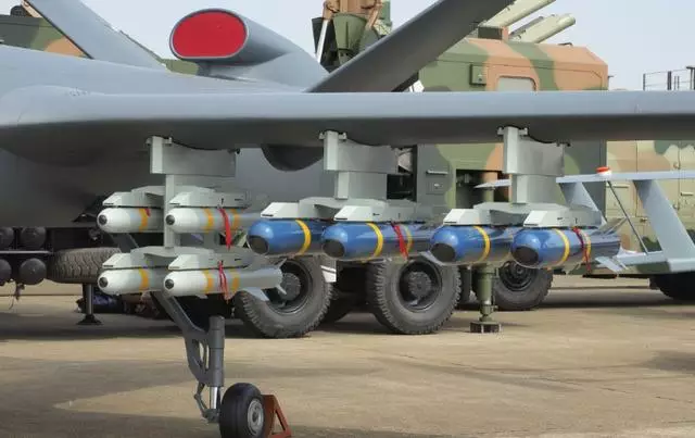 图为挂满各式弹药的"彩虹-5"无人机,它在性能上和美国MQ-9"死神"对标